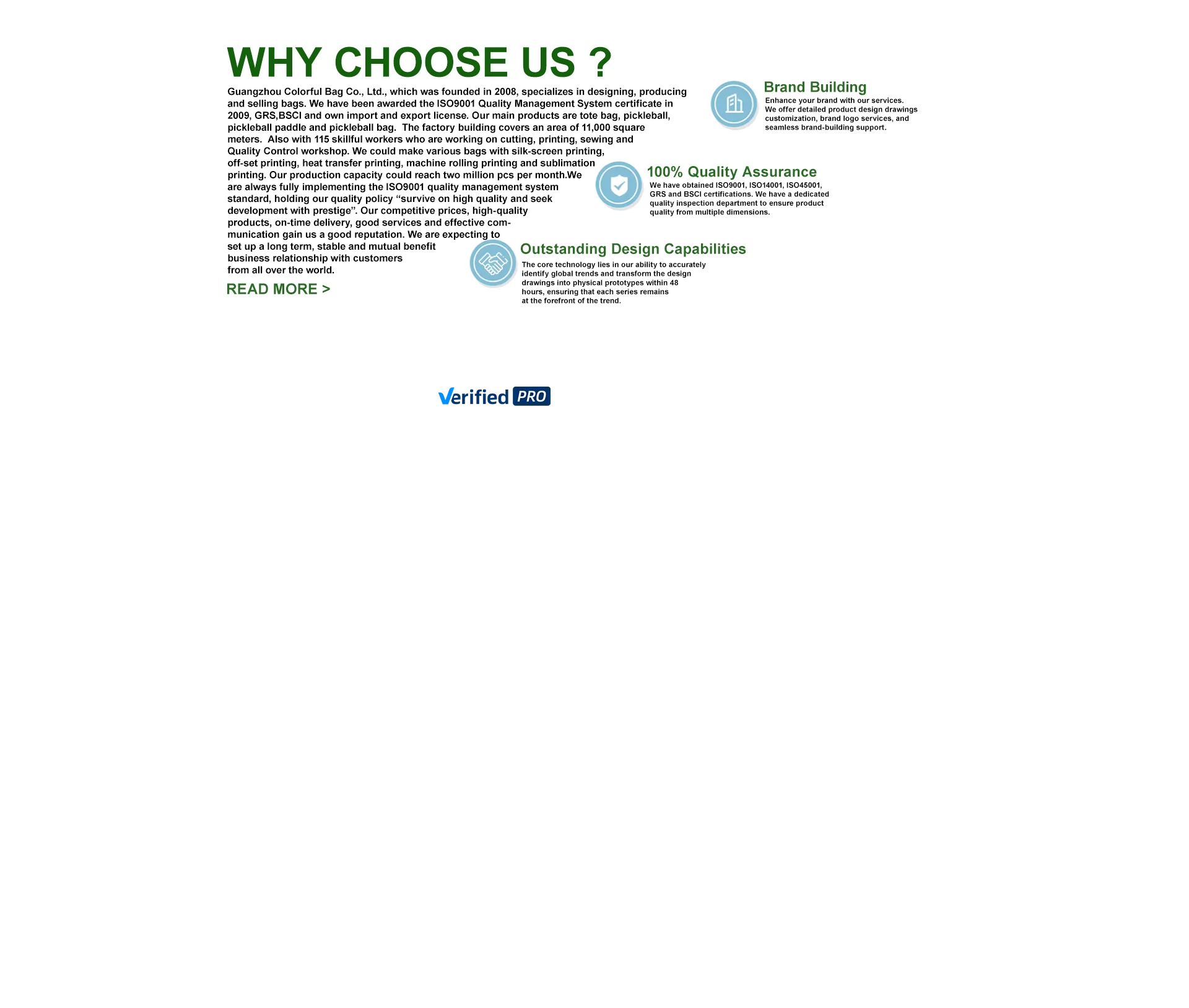 #3 leading factory for Lifestyle BagsTotal floorspace (11,000㎡)Finished product inspectionODM services availableOEM for well-known brands